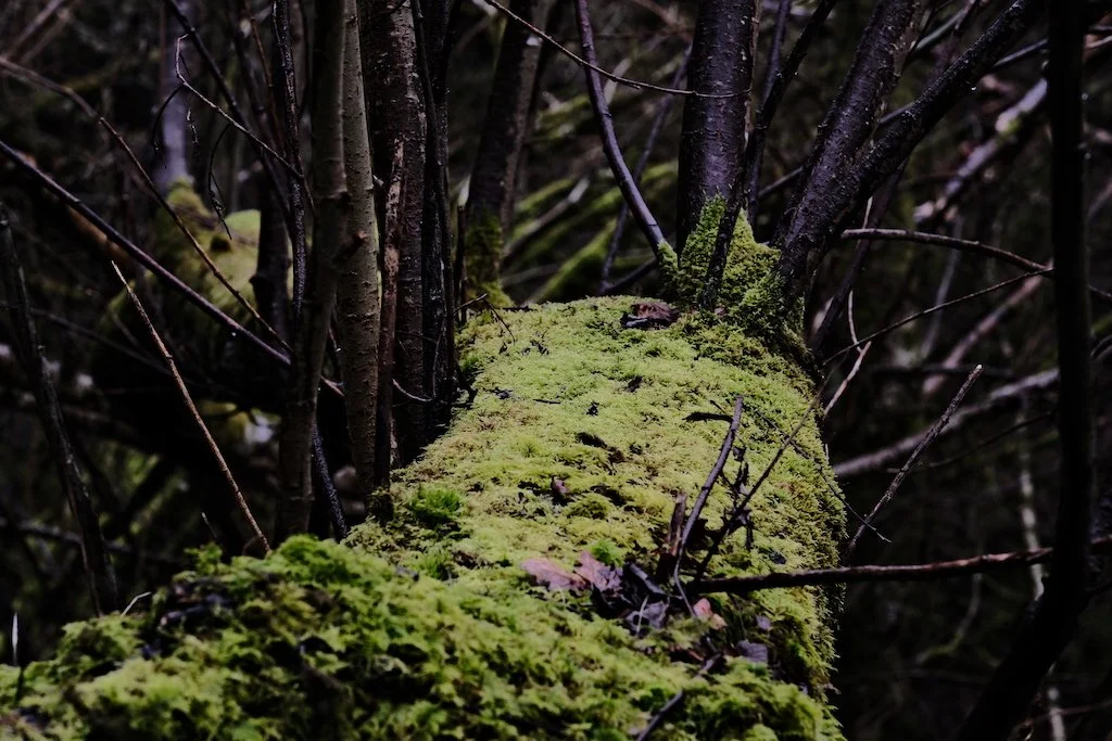 Due to the amount of rain you can find if you spend time seeking the odd mushroom popping up. The lichen and moss is delightful. To deeply connect to a place is through mindful curiosity and delve deeply into the nooks and crannies , inspect the remaining leaves , check out the moss , marvel in the textures and shapes of trees it is all beautiful. Bringing your attention to this is healing and strengthens your mindfulness. Seeing beauty in everything opens your heart and mind changing how your brain is wired forging better connections.